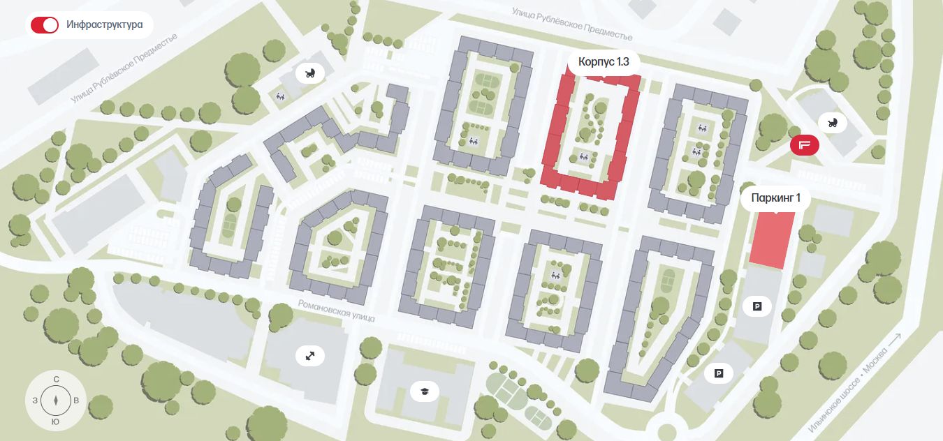 Комплекс расположен на западе Московской области, в деревне Глухово, всего в 10 км от МКАД по престижному Новорижскому шоссе. Это направление традиционно считается одним из самых экологичных и востребованных. Отсутствие промышленных зон и чистая роза ветров обеспечивают благоприятную экологическую обстановку.